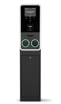 Auch beim Thema Bedienung und Abrechnung überzeugt die witty park 2. Ein dimmbares 8-Zoll-Farbdisplay macht die Benutzerführung besonders intuitiv. Der Ladevorgang kann entweder per RFID-Karte oder per QR-Code gestartet werden – auf Wunsch mit dynamisch angezeigtem, fälschungssicherem QR-Code für eichrechtskonforme Abrechnung. Die witty park 2 ist OCPP 1.6j-kompatibel, lastmanagementfähig und lässt sich optional per integriertem LTE-Modem an einen Backend-Dienst anschließen. Das robuste Metallgehäuse mit IP55 und IK10 (Display IK08) macht die witty park 2 ideal für den Einsatz auf Firmenparkplätzen, in Tiefgaragen von Mehrfamilienhäusern, an Hotels oder auf öffentlichen Stellplätzen. Für die Montage stehen eine Wandplatte oder ein integrierter Standfuß zur Auswahl. Mit der witty park 2 bringt Hager ein Produkt auf den Markt, das dem Elektrohandwerk echte Vorteile bietet – durchdacht bis ins Detail, leistungsstark im Betrieb und verlässlich in jeder Situation. Die witty park 2 bietet somit das Beste einer DC-Ladesäule in einer AC-Ladesäule.