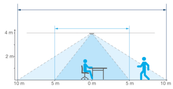 Erfasst Bewegungen selbst aus großen Höhen von bis zu zehn Metern. Ermöglicht z. B. das separate, bewegungsabhängige Beleuchten einzelner Gänge in Lagerhallen.