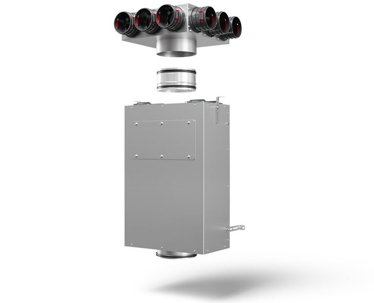 Neben dem Übergang in die Decken kann sie mit zusätzlichen Anschlussstutzen auch als Durchgangsverteiler genutzt werden. Das ermöglicht eine intelligente und platzsparende Luftverteilung über mehrere Stockwerke.