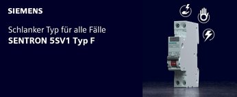 In vielen modernen Geräten, wie z. B. Waschmaschinen oder Heizungspumpen, werden einphasige Frequenzumrichter verwendet. Diese können Fehlerströme aus einem Frequenzgemisch mit Frequenzanteilen bis 1 kHz erzeugen. Hiervor schützen FI-Schutzschalter des Typs F. Für die Nachrüstung in bestehenden Verteilern ist der kombinierte FI/LS-Schalter Typ F von Siemens ideal. Er bietet Fehlerstrom- und Überlastschutz in nur 1 TE. Damit benötigt er nicht mehr Platz als ein herkömmlicher LS-Schalter.