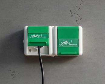 Die neue SCHUKO®Steckdose für E-Bikes im witterungs- und spritzwassergeschützten Aufputz-Programm WG 800 bietet eine ideale Lademöglichkeit. Dank des erhöhten Schutzgrades IP 44 eignet sich die Anschlussdose für den Einsatz im Außenbereich sowie an allen Orten wo Menschen mit dem E-Bike Rast machen.