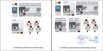 Mit unseren vier LUXORliving-Startersets „Antriebe basic“, „Beleuchtung“, „Antriebe“ und „Antriebe+Beleuchtung“ gelingt der Einstieg ins Smart Home. Selbstverständlich lassen sich die Komponenten jederzeit individuell erweitern und ausbauen. Und das Beste: Mit den Startersets haben Sie gegenüber den Einzelkomponenten zum Einstieg einen preislichen Vorteil.
