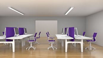 Der 1500 mm lange Office Allrounder bietet in der Pendelvariante zusätzlich die Option, sie modular aneinander zu reihen. Die Leuchten werden dabei einfach mit Hilfe eines Zubehörteils verbunden und ein an die Raumlänge angepasstes Lichtband entsteht.
