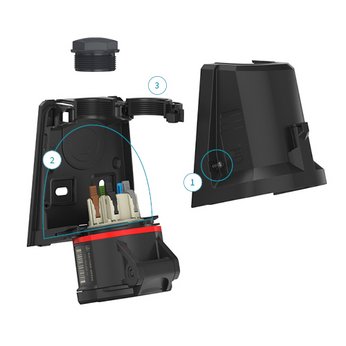 1. Intuitive Bedienung und einfache Gehäuseöffnung: Die Gehäuseabdeckung lässt sich dank unverlierbaren Schrauben und Fügehilfen leicht öffnen und schließen.