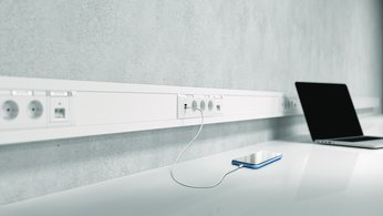 Digitale Endgeräte wie Smartphones oder Tablets ohne Netzgerät direkt am Brüstungskanal laden? Mit dieser Kanalsteckdose kein Problem! Die beiden USB-Anschlüsse nutzen den EU-weiten Standard USB-C. Dank Power Delivery stellt sich die Steckdose automatisch auf die optimalen Ladeparameter des Endgeräts ein und lädt dieses schnell, energieeffizient und akkuschonend.