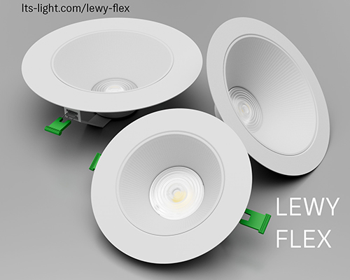 LEWY-Flex Sanierungsdownlight: In drei Größen passgenau für verschiedenste Deckenausschnitte – dank hoher Effizienz auch BEG-förderfähig