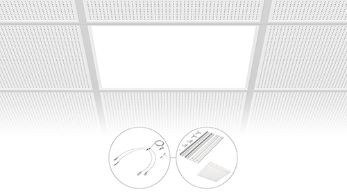 - Superflaches Einlegelichtfeld für Rasterdecken (24 mm T-Profil) in 600x600, 625x625 und 1200x300 mm