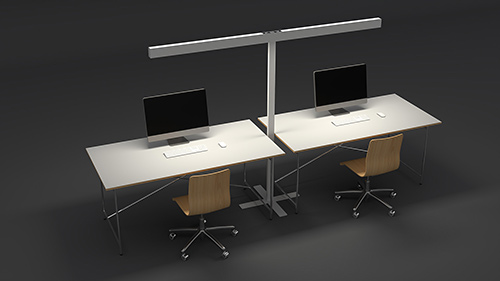 - Auch in T-Form erhältlich für eine gleichmäßige Ausleuchtung von Doppelarbeitsplätzen